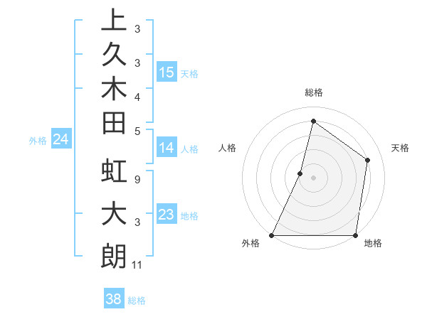 上久木田 虹大朗さんを姓名の画数から五運を鑑定