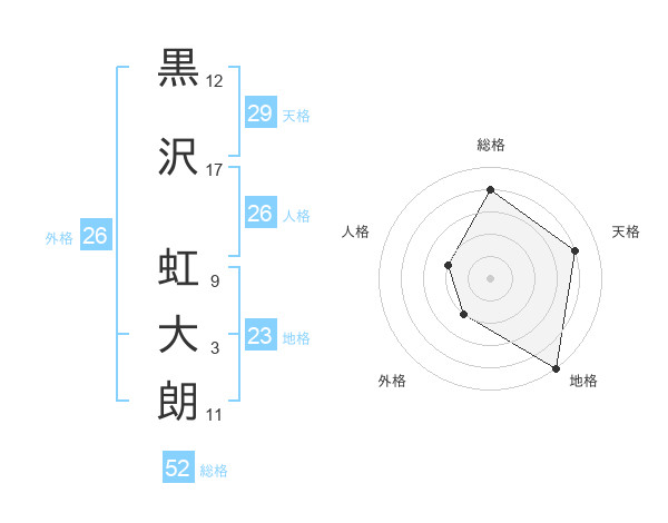 黒沢 虹大朗さんを姓名の画数から五運を鑑定