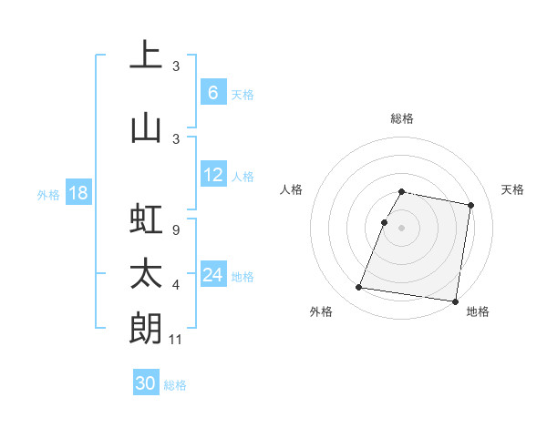 上山 虹太朗さんを姓名の画数から五運を鑑定
