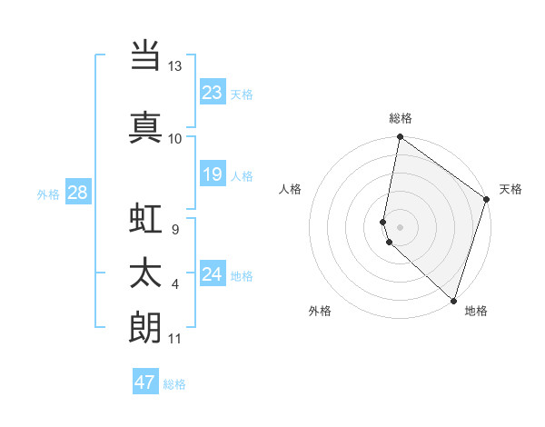 当真 虹太朗さんを姓名の画数から五運を鑑定