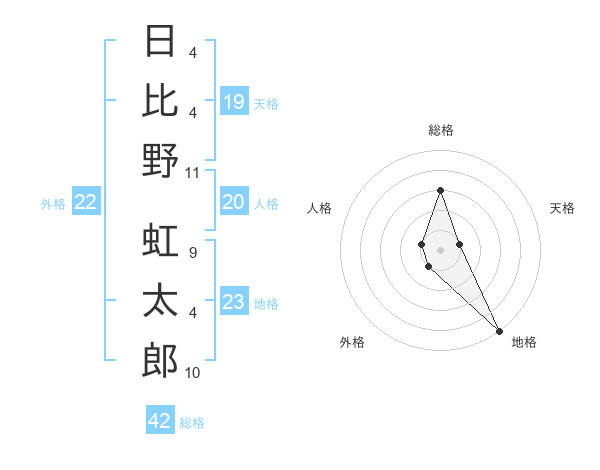 日比野 虹太郎さんを姓名の画数から五運を鑑定