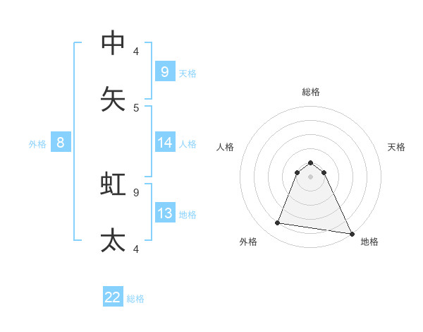 中矢 虹太さんの総格は22画の1点!