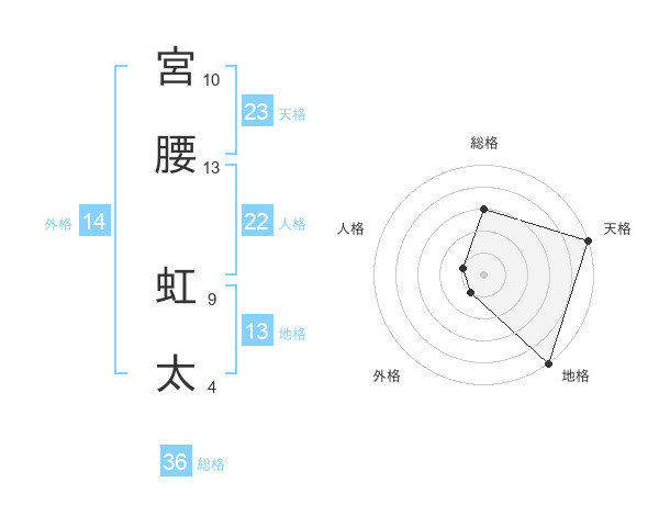宮腰 虹太さんを姓名の画数から五運を鑑定