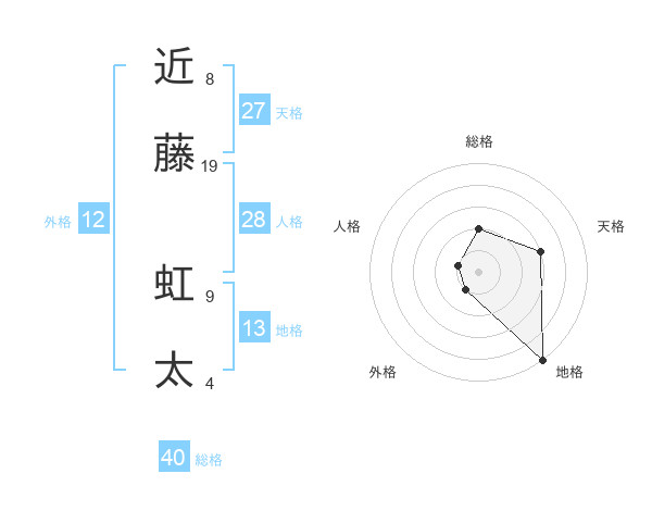近藤 虹太さんを姓名の画数から五運を鑑定