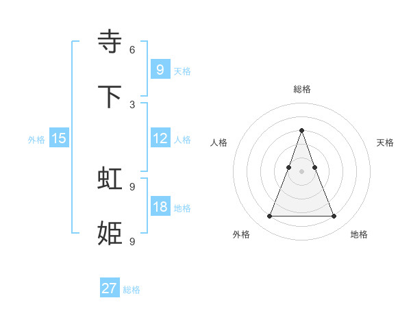 寺下 虹姫さんを姓名の画数から五運を鑑定
