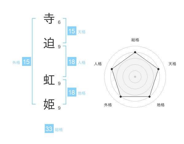 寺迫 虹姫さんを姓名の画数から五運を鑑定