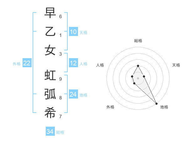 早乙女 虹弧希さんの総格は34画の2点!