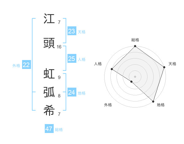 江頭 虹弧希さんを姓名の画数から五運を鑑定