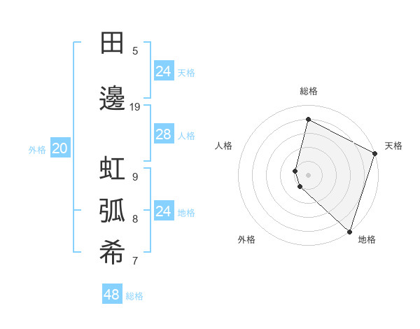 田邊 虹弧希さんを姓名の画数から五運を鑑定