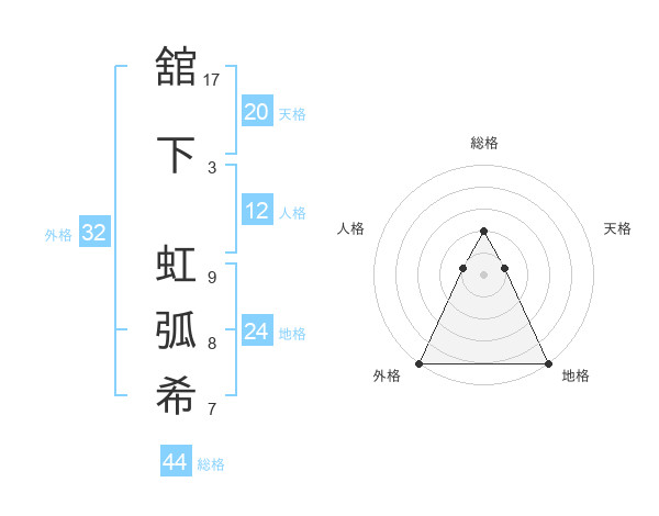 舘下 虹弧希さんの外格は32画の5点!