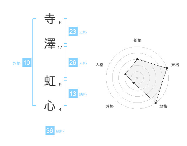 寺澤 虹心さんを姓名の画数から五運を鑑定