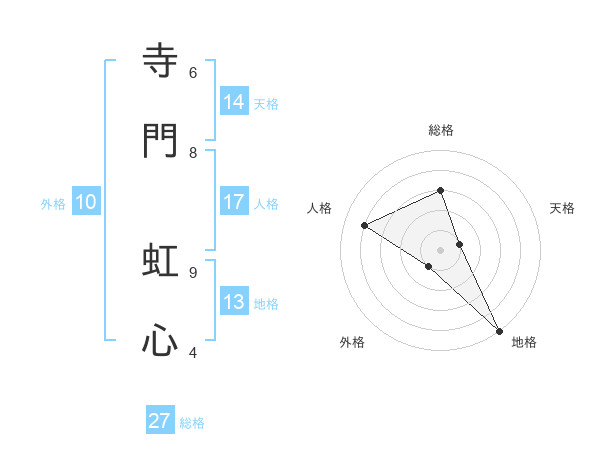 寺門 虹心さんの天格は14画の1点!