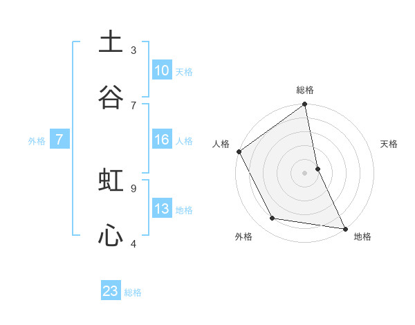 土谷 虹心さんを姓名の画数から五運を鑑定