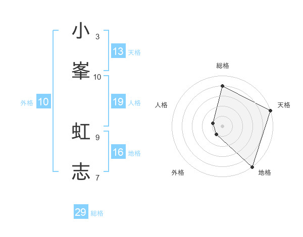 小峯 虹志さんの総格は29画の4点!