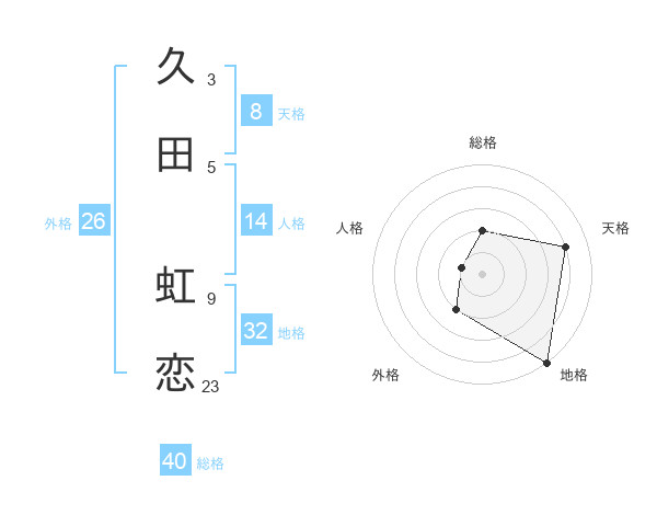 久田 虹恋さんを姓名の画数から五運を鑑定