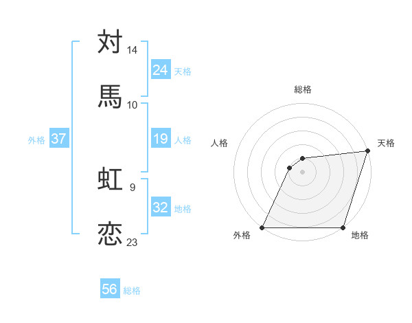 対馬 虹恋さんの外格は37画の5点!