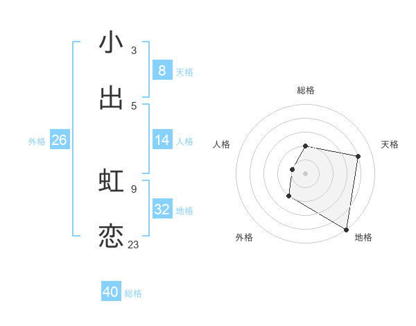 小出 虹恋さんの天格は8画の4点!