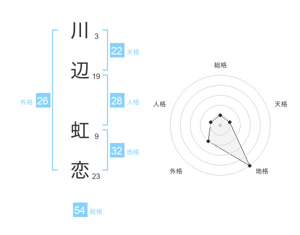 川辺 虹恋さんの総格は54画の1点!