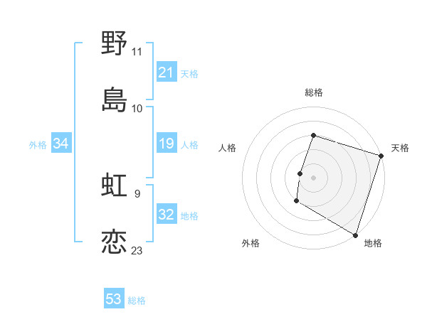 野島 虹恋さんを姓名の画数から五運を鑑定