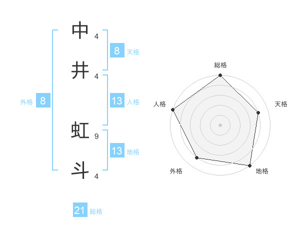 中井 虹斗さんの天格は8画の4点!