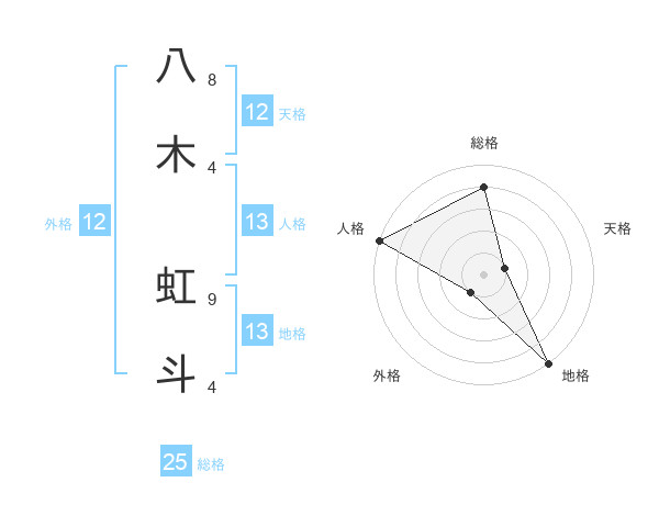 八木 虹斗さんの地格は13画の5点!
