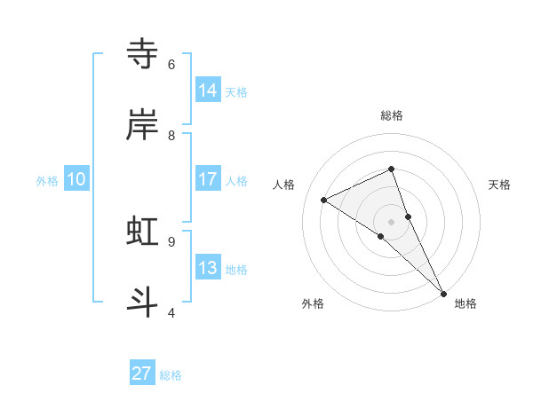 寺岸 虹斗さんの総格は27画の3点!