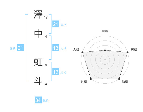 澤中 虹斗さんの外格は21画の5点!