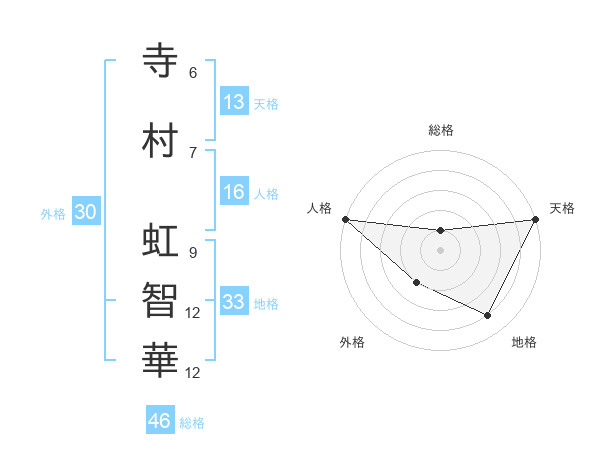 寺村 虹智華さんの天格は13画の5点!