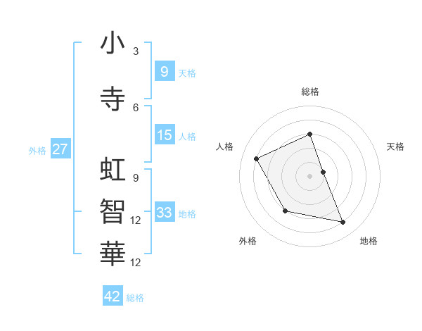 小寺 虹智華さんを姓名の画数から五運を鑑定