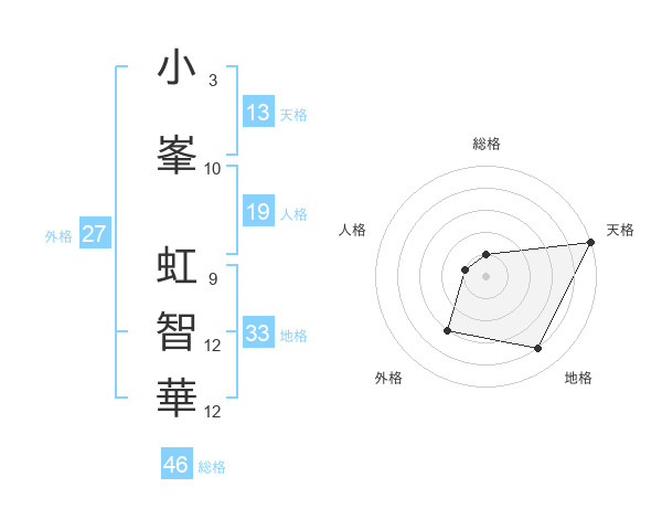 小峯 虹智華さんを姓名の画数から五運を鑑定