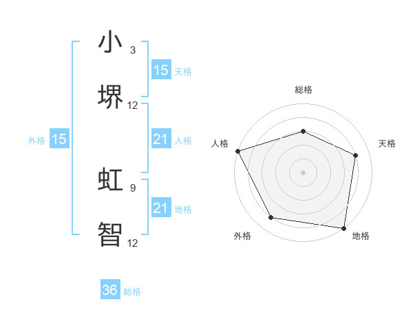 小堺 虹智さんの総格は36画の3点!