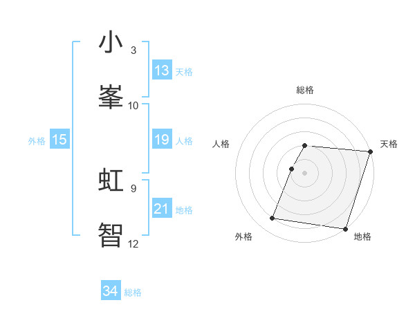 小峯 虹智さんの天格は13画の5点!
