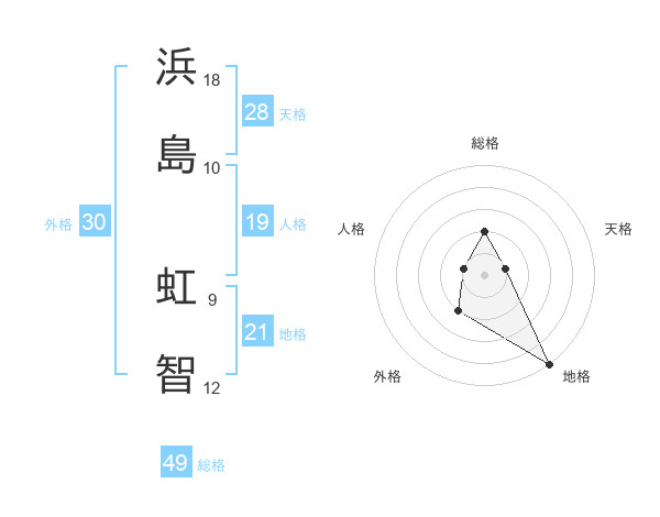 浜島 虹智さんを姓名の画数から五運を鑑定