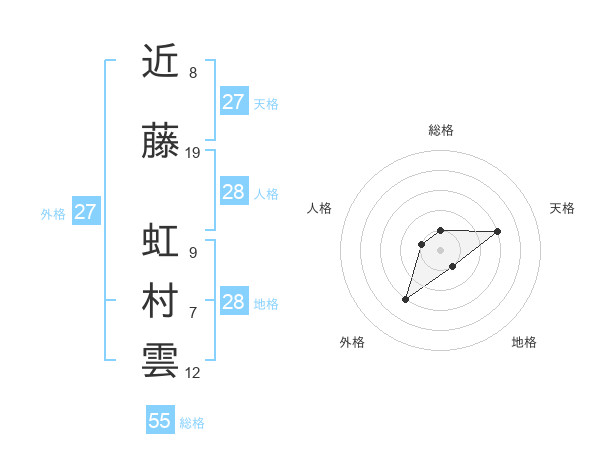 近藤 虹村雲さんを姓名の画数から五運を鑑定