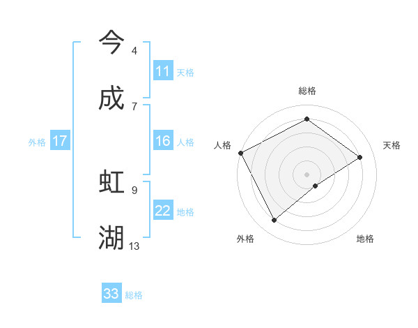 今成 虹湖さんの総格は33画の4点!