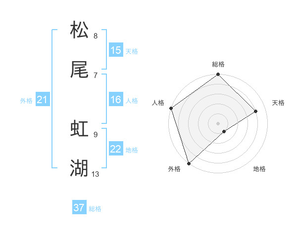松尾 虹湖さんを姓名の画数から五運を鑑定