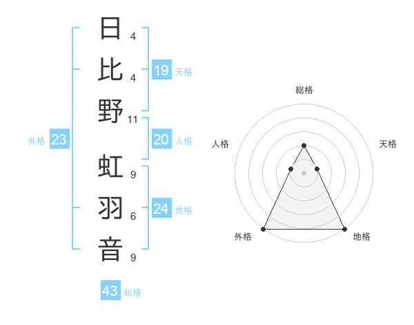 日比野 虹羽音さんの外格は23画の5点!