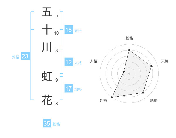 五十川 虹花さんの外格は23画の5点!