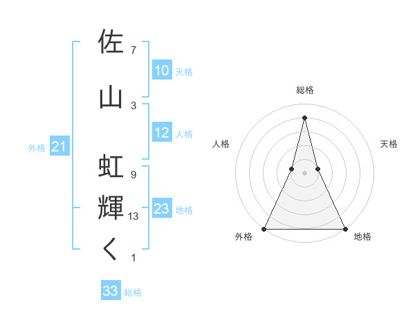 佐山 虹輝くさんの総格は33画の4点!