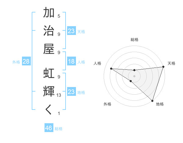 加治屋 虹輝くさんを姓名の画数から五運を鑑定