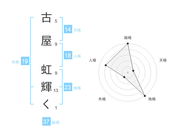 古屋 虹輝くさんを姓名の画数から五運を鑑定