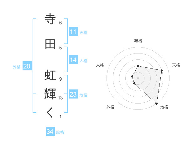 寺田 虹輝くさんの総格は34画の2点!