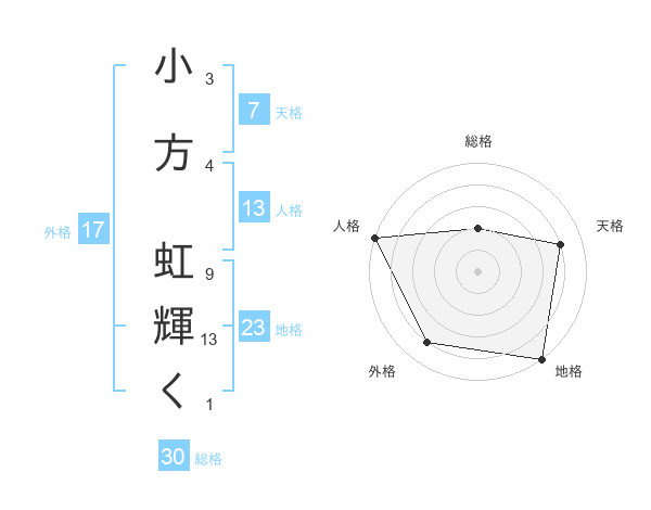 小方 虹輝くさんを姓名の画数から五運を鑑定