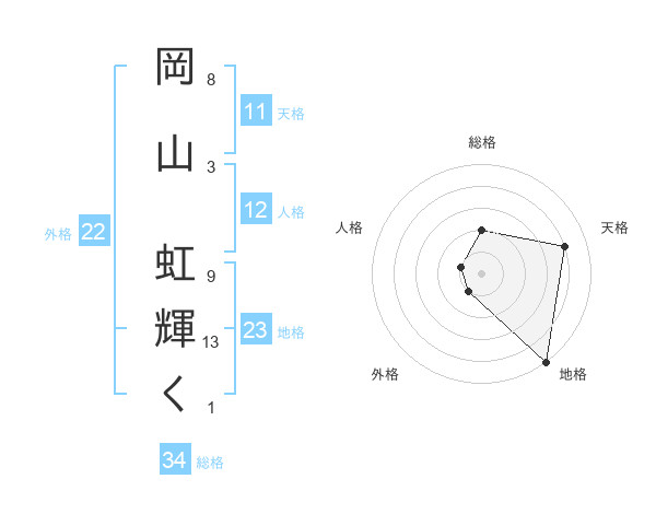 岡山 虹輝くさんを姓名の画数から五運を鑑定