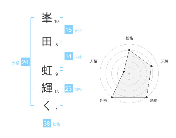 峯田 虹輝くさんを姓名の画数から五運を鑑定