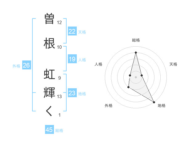 曽根 虹輝くさんの総格は45画の4点!