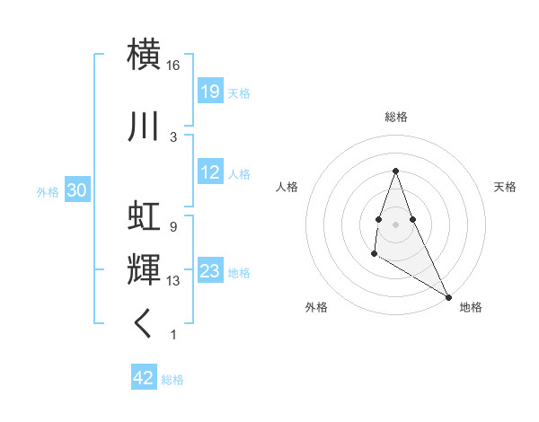 横川 虹輝くさんの地格は23画の5点!