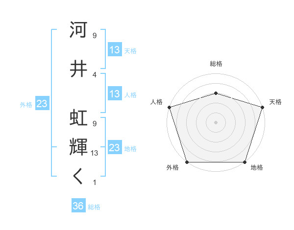 河井 虹輝くさんを姓名の画数から五運を鑑定