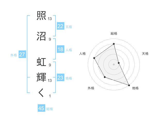 照沼 虹輝くさんの総格は45画の4点!