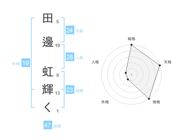 田邊 虹輝くさんの地格は23画の5点!